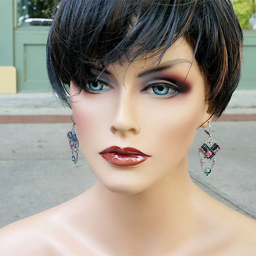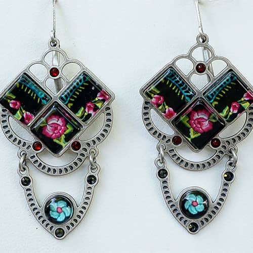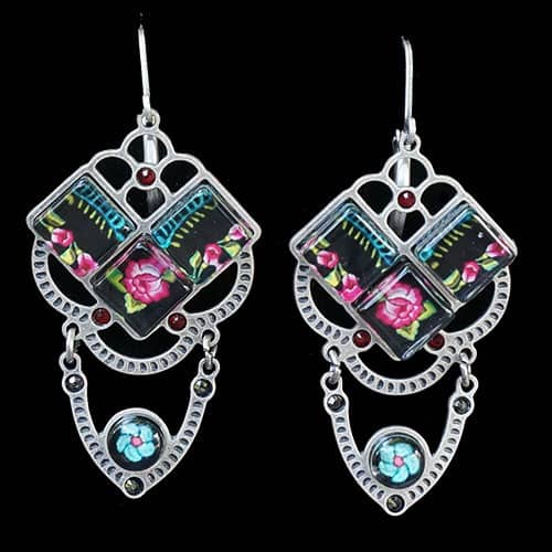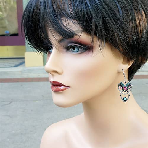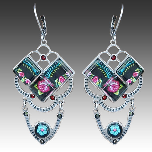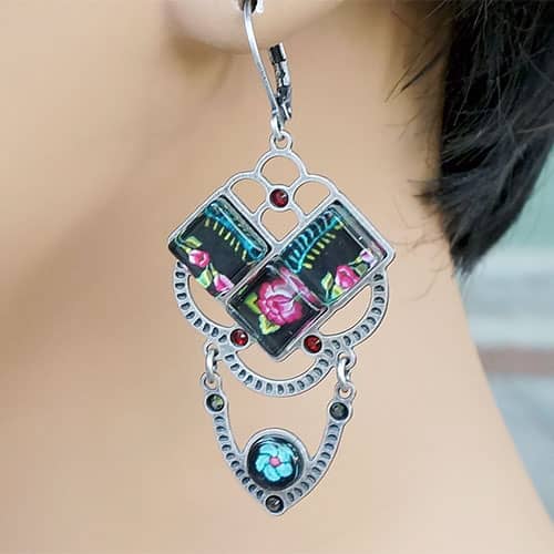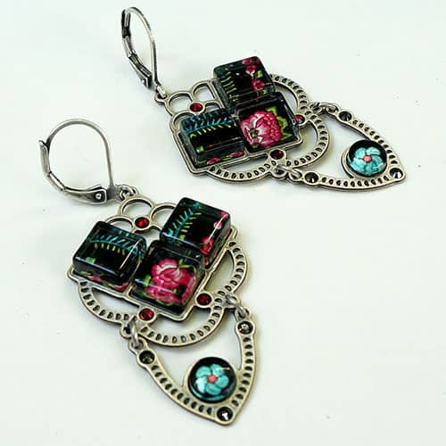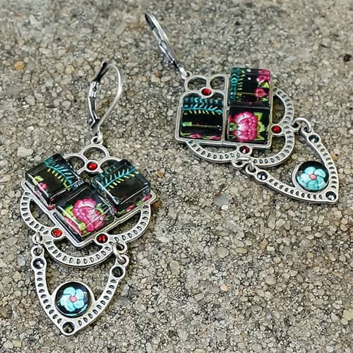 Don't know why, but they remind me of the good old flower power days. Bright colors, gauze blouses and flowers in our hair. Not something I know about. Just read about it. Yeah...that's it. Length measured from the center of the earwire curve is 2.25". Design is 1.5". Measures 1" across the widest top section.