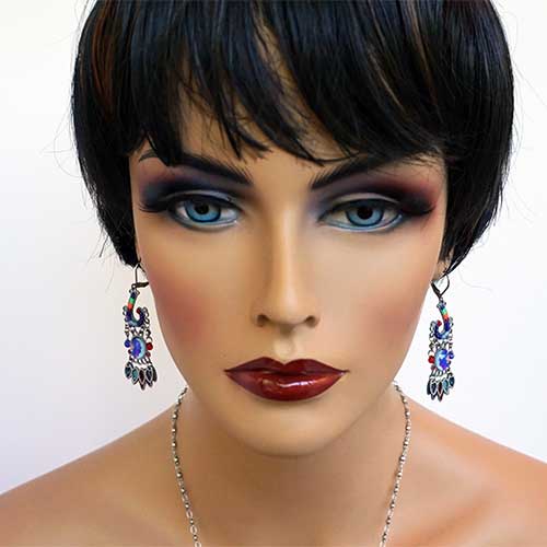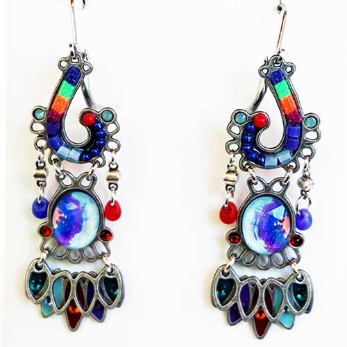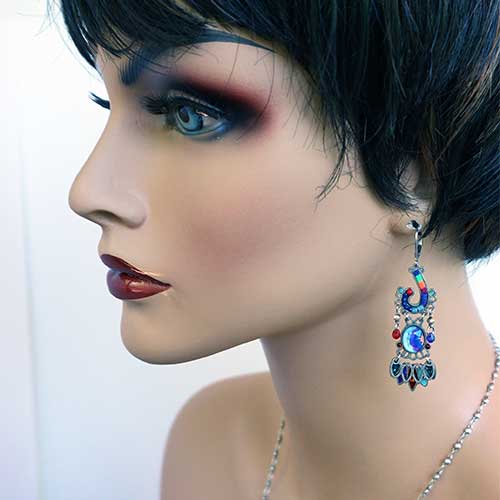 Earrings measure 2.25" long measured from the center of the earwire curve. Just over .5" across the widest area. We show them paired with JN2564